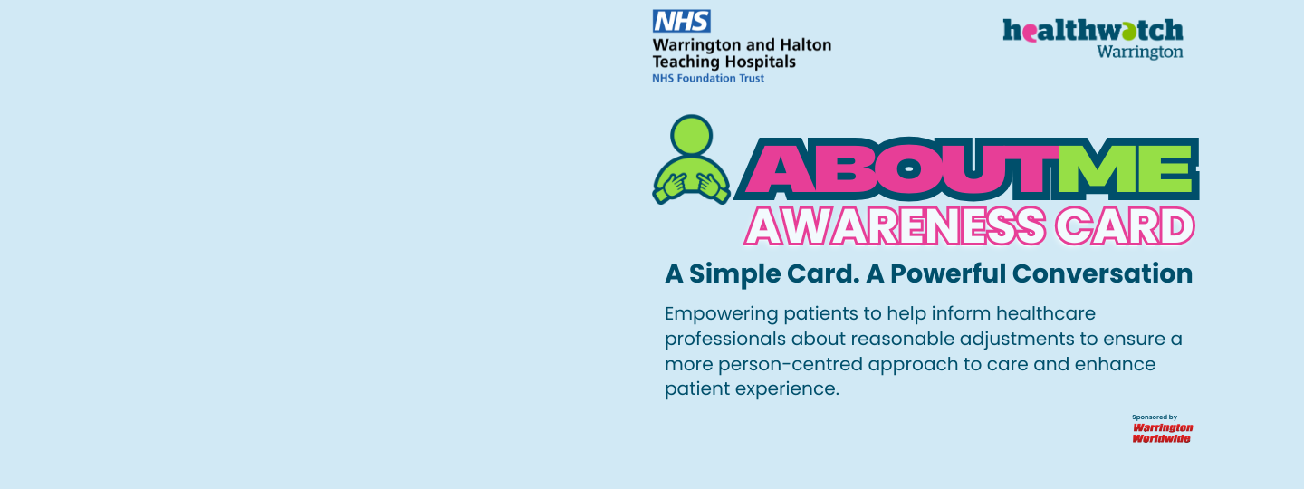 We’ve worked closely with the Patient Experience and Inclusion Team at Warrington & Halton Teaching Hospitals NHS Foundation Trust to make sure hospital staff know how to use the card and support you in the best way possible.