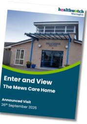 Healthwatch have a legal power to visit health and social care services and see them in action. This power to Enter and View services offers a way for Healthwatch Warrington to meet some of their statutory functions and allows them to identify what is working well with services and where they could be improved